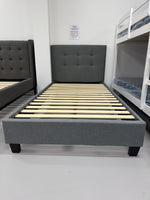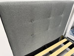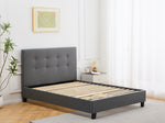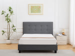 Upholstered in high-quality fabric, the bed frame offers a cozy and modern feel. -