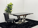 The silver stainless steel legs are not just about looks—they’re built to support the table securely, ensuring long-lasting stability. With its bold design and sleek finish, this table is more than just furniture. It’s a statement piece that elevates any dining room.