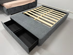 Maximise your bedroom space with the Milano Drawer Base, designed to offer strong mattress support and hidden storage in one. Featuring Finland pinewood slats and a soft grey fabric finish, this base blends effortlessly with modern interiors. With its smart under-bed storage drawers, it’s perfect for keeping your room tidy without needing extra furniture. The 25cm bed rails and 10cm legs offer the ideal height, and it’s fully compatible with the Milano Headboard for a seamless bedroom upgrade.