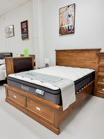 Introducing the HERRISON DRAWER SOLID WOOD BEDROOM RANGE  , a masterpiece in the Harrison Bedroom Range. Crafted from Solid Acacia Wood, this bed frame is more than just furniture; it's a promise of enduring style and comfort. The double central rails with U brackets and full-height side rails ensure a secure and stable foundation for your restful nights. With two storage foot-end drawers, you don't just get a bed; you get a practical storage solution seamlessly integrated into the frame.