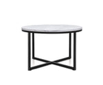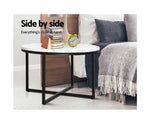 Simple and modernistic. Our Artiss Coffee Table makes for a resounding statement in style, function and practicality that fits in brilliantly with any discerning home decor. Featuring a black powder-coated metal tube base topped with a premium E1 grade MDF tabletop with elegant marble-texture laminate finish, our coffee table instantly makes an impression in your living room with its minimalist cues. The round table is smooth with safe rounded edges, whilst the unique X-shape leg design gives the coffee table loads of character as well as providing a very stable base. Not least, heavy-duty fixings and anti-slip rubber feet complete this charismatic ensemble. Wherever the coffee table is used, rest assured that it will be an astounding presence.