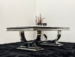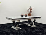 Elevate your living space with the Coffee Table from Furniture Roots. This stunning coffee table features a sleek grey marble top that adds a touch of elegance to your home. With its strong silver stainless steel legs, this table not only looks great but also offers sturdy support for all your needs.