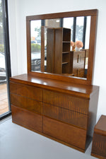 Transform your bedroom with the Maddington Wooden Dresser with Mirror. The dresser measures 1400 x 395 x 847mm, while the mirror is 1200 x 60 x 1000mm, providing a perfect combination for your bedroom needs. The built-in mirror with sleek design complements any décor. The rich Rio Brown finish adds warmth and sophistication to your bedroom. Made in Malaysia, this high-quality set combines exceptional functionality with modern design, making it a perfect addition to any bedroom.