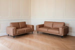 Discover the Lisa: a stylish tan, leather-look sofa that pairs soft, loose-back comfort with durable support. It’s perfect for cosy movie nights or smart lounge styling at home. This modern sofa combines plush 28-density foam and S-spring pocket coils for long-lasting comfort and shape. It is finished in Abby leather-look fabric that’s easy to care for and great for family life. Available in roomy 2-seater and 3-seater sofa sizes, Lisa brings a warm, modern look to living rooms across Perth.