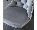 Stylishly designed with intricate details, our stool combines intricate details with sophisticated mid-century charm, featuring button tufted back and stud trims for an elegant touch. Its adjustable height makes it perfect for any occasion, while the sturdy chromed metal base offers a 360° swivel function and a footrest for added comfort. A plastic ring prevents floor scratches, ensuring both practicality and aesthetics. With a solid chromed steel frame and non-slip rubber ring for stability, this bar stool is perfect for various settings, from casual gatherings to formal events. Its gorgeous velvet upholstery adds a touch of nobility and modern fashion, making it a versatile. Its classic design effortlessly complements any space, whether it's in a dining room, bedroom, balcony, living room, restaurant, or any other area where style and comfort are at the top.
