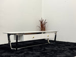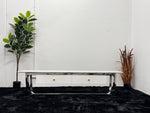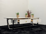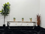 Built with strong silver stainless steel legs, this TV unit offers excellent support and stability. Plus, it comes with two convenient drawers for extra storage, helping you keep your space tidy and organized. With its stylish design and practical features, this TV unit is more than just a piece of furniture; it’s a focal point that elevates your living area.